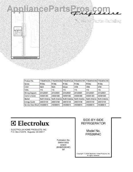 Parts for Frigidaire FRS26R4CW8: 01 - Cover Parts