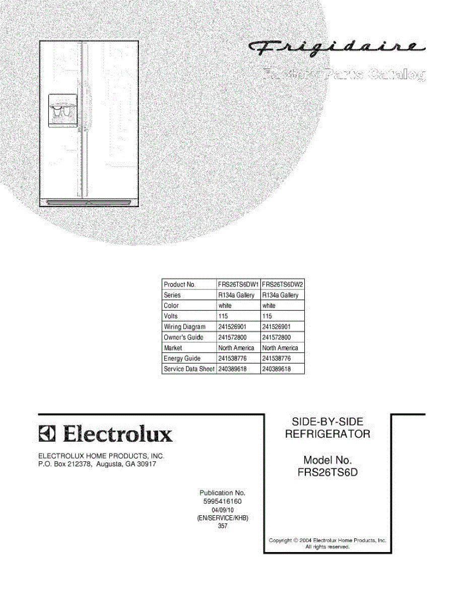 Parts for Frigidaire FRS26TS6DW1: 01 - Cover Parts