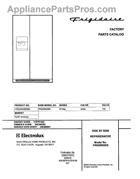 Parts for Frigidaire FRS26W2BSB0: 01 - Cover Parts