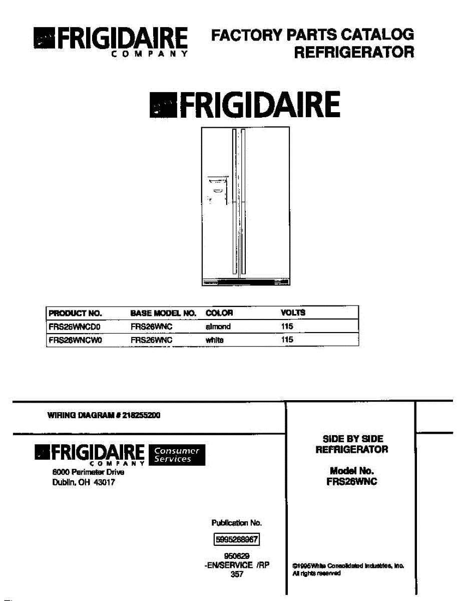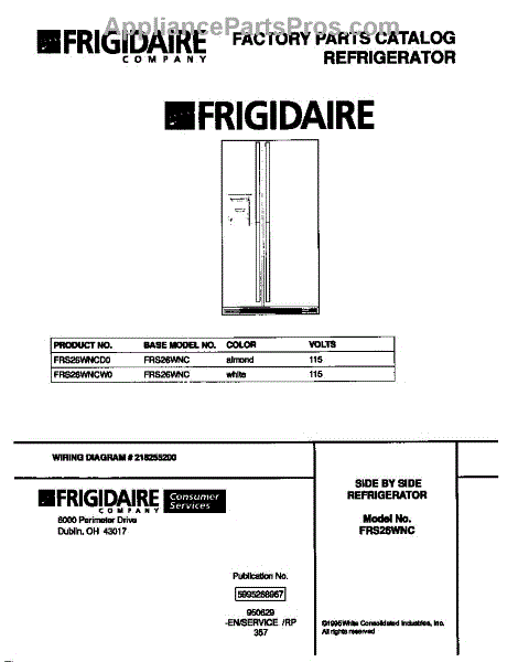 Parts for Frigidaire FRS26WNCD0: 01 - Cover Parts
