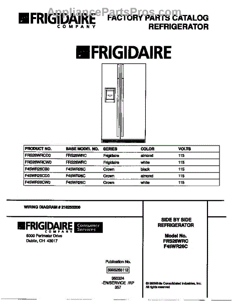 Parts for Frigidaire FRS26WRCW0: 01 - Cover Parts