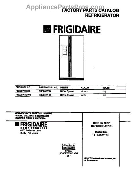 Parts for Frigidaire FRS26WRCW6: 01 - Cover Parts