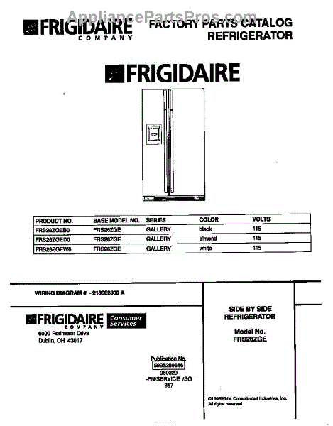 Parts for Frigidaire FRS26ZGEB0: 01 - Cover Parts