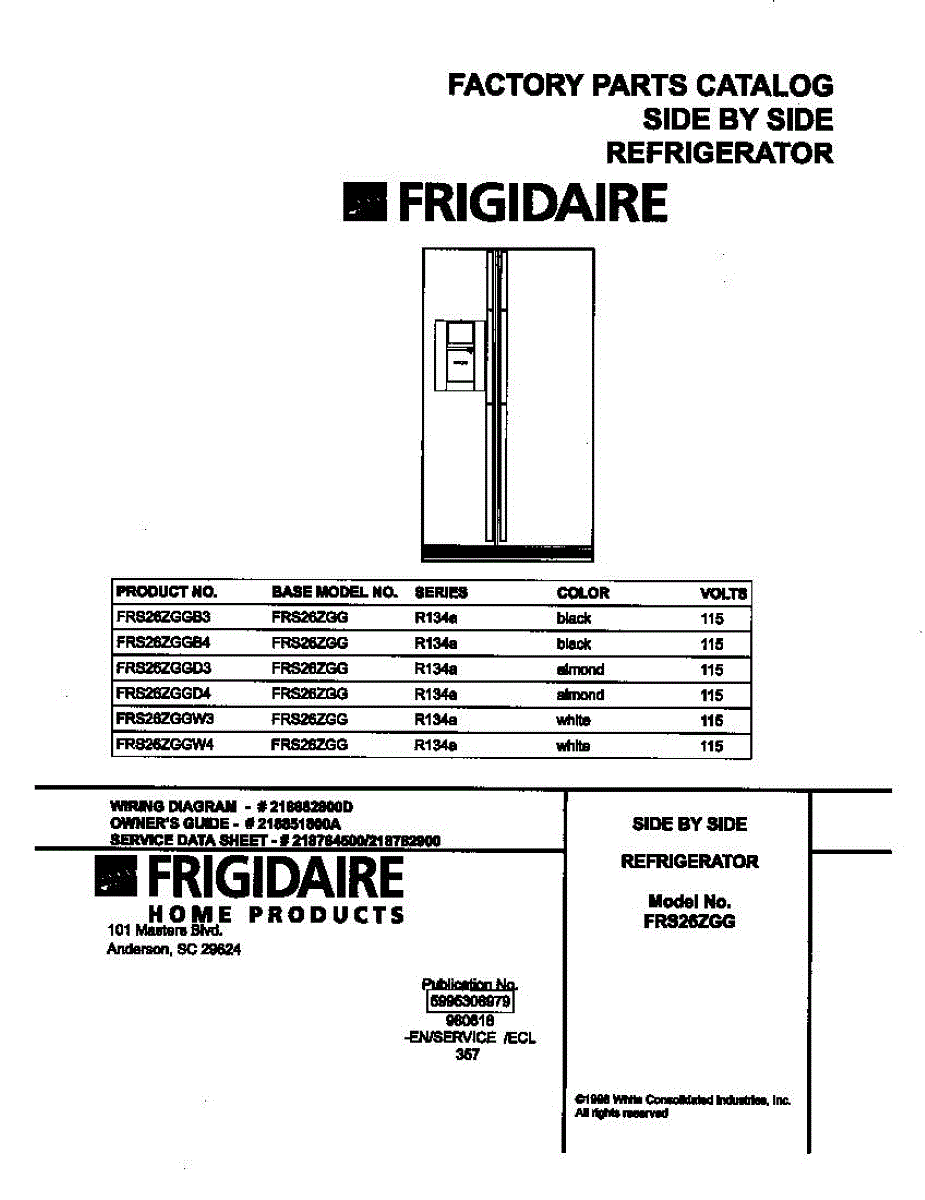 Parts for Frigidaire FRS26ZGGB3: 01 - Cover Parts