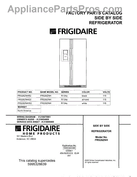 Parts for Frigidaire FRS26ZNHB2: 01 - Cover Parts