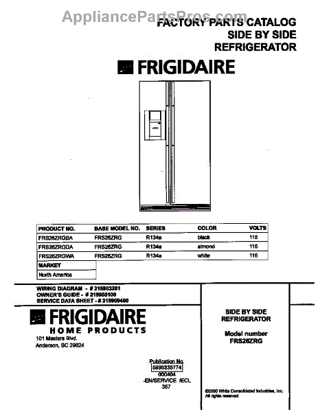 Parts for Frigidaire FRS26ZRGDA: 01 - Cover Parts