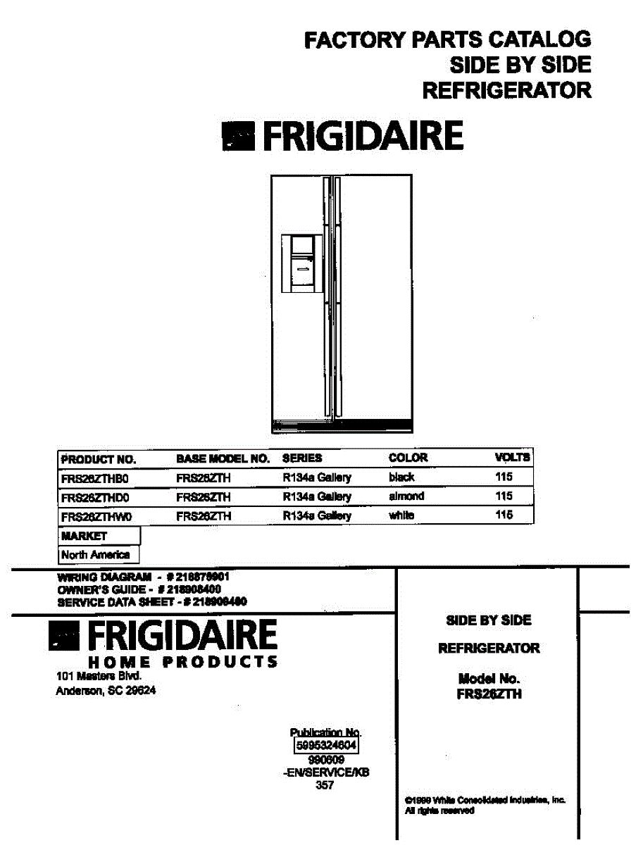 Parts for Frigidaire FRS26ZTHB0: 01 - Cover Parts