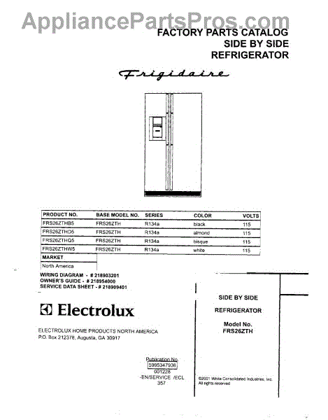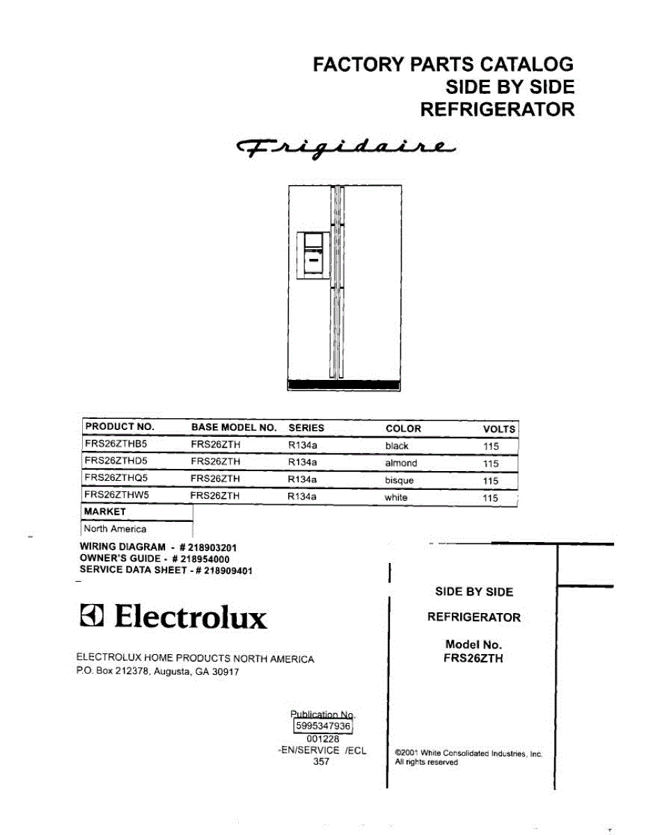 Parts for Frigidaire FRS26ZTHB5: 01 - Cover Parts