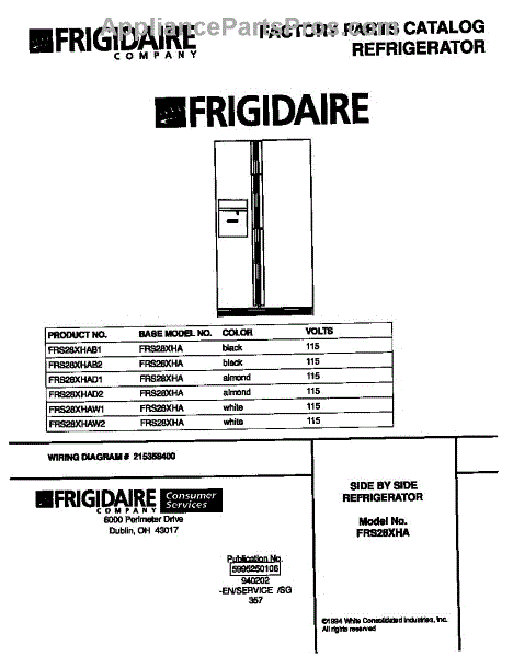 Parts for Frigidaire FRS28XHAD2: 01 - Cover Parts