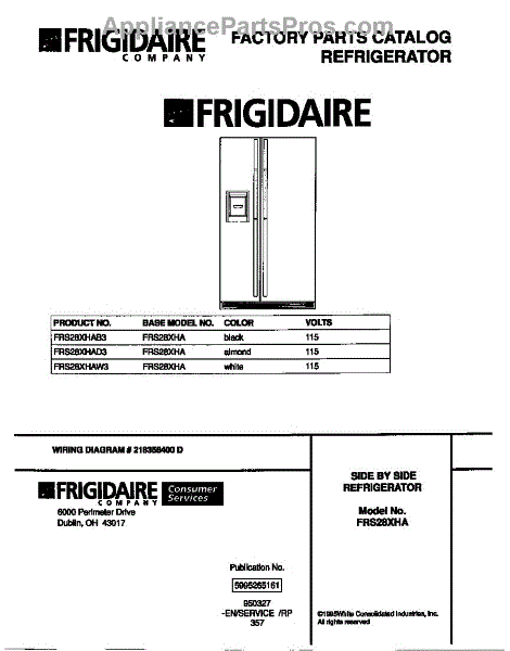 Parts for Frigidaire FRS28XHAD3: 01 - Cover Parts