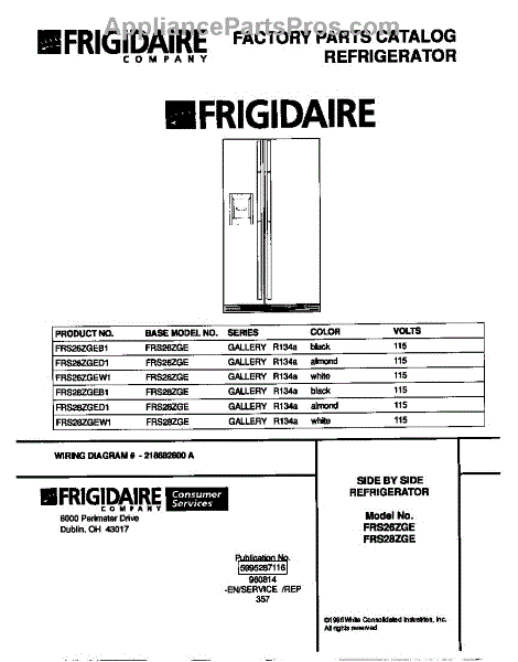 Parts for Frigidaire FRS28ZGED1: 01 - Cover Parts