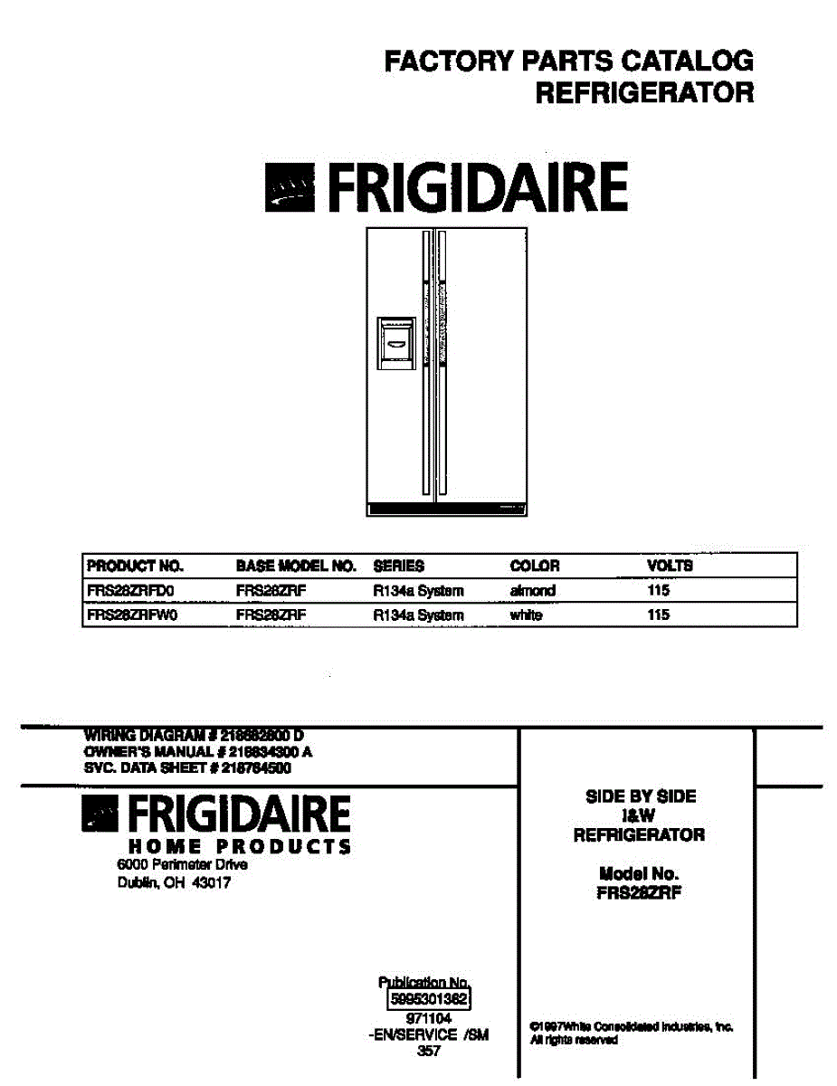 Parts for Frigidaire FRS28ZRFD0: 01 - Cover Parts