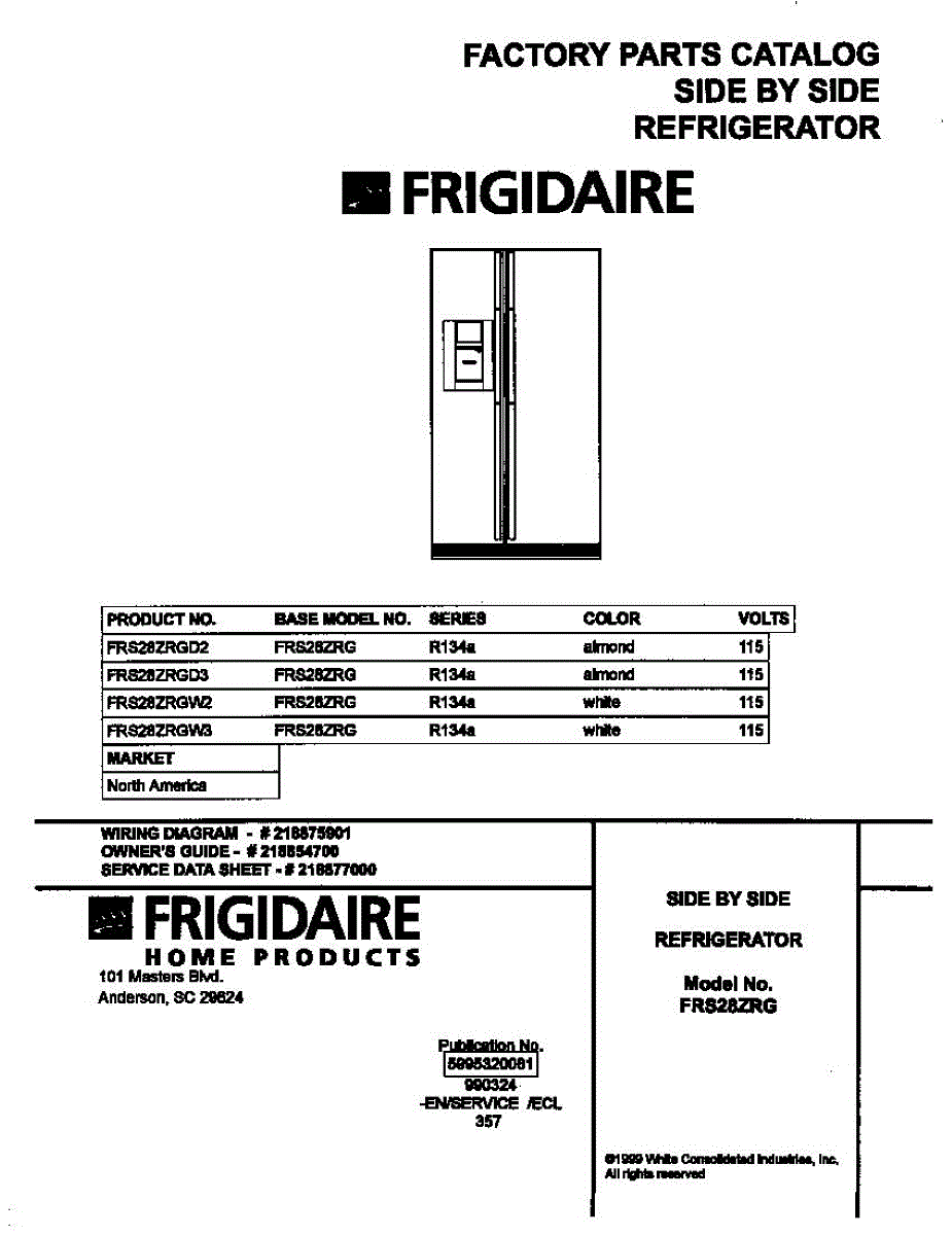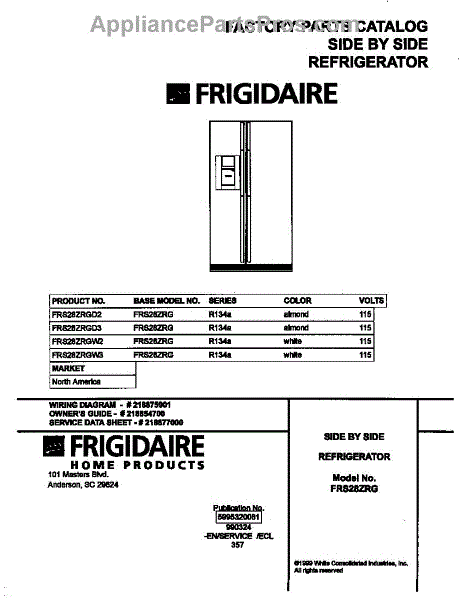 Parts for Frigidaire FRS28ZRGW2: 01 - Cover Parts