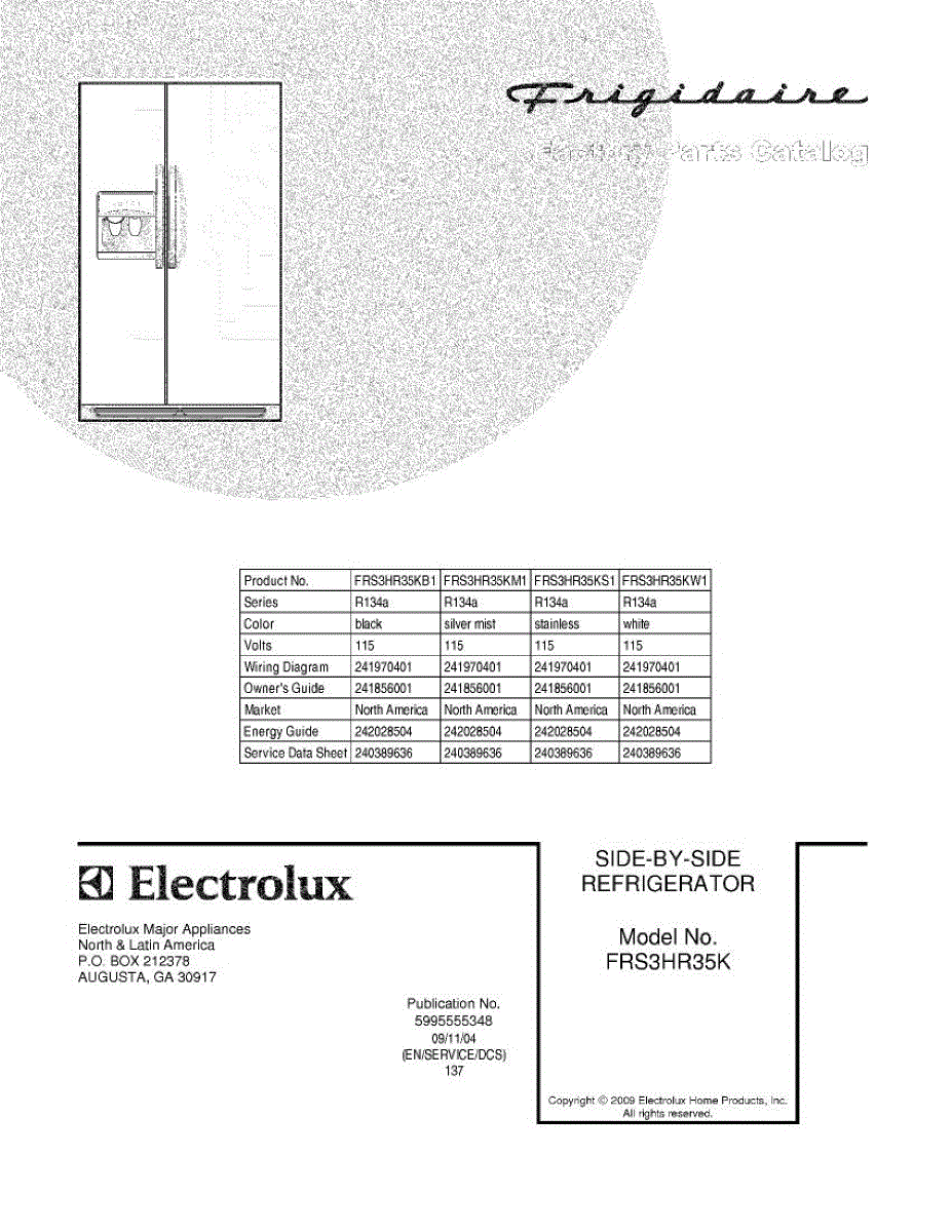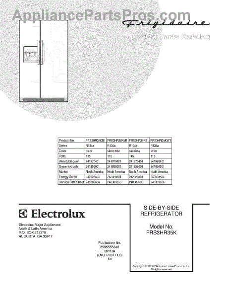 Parts for Frigidaire FRS3HR35KS1: 01 - Cover Parts