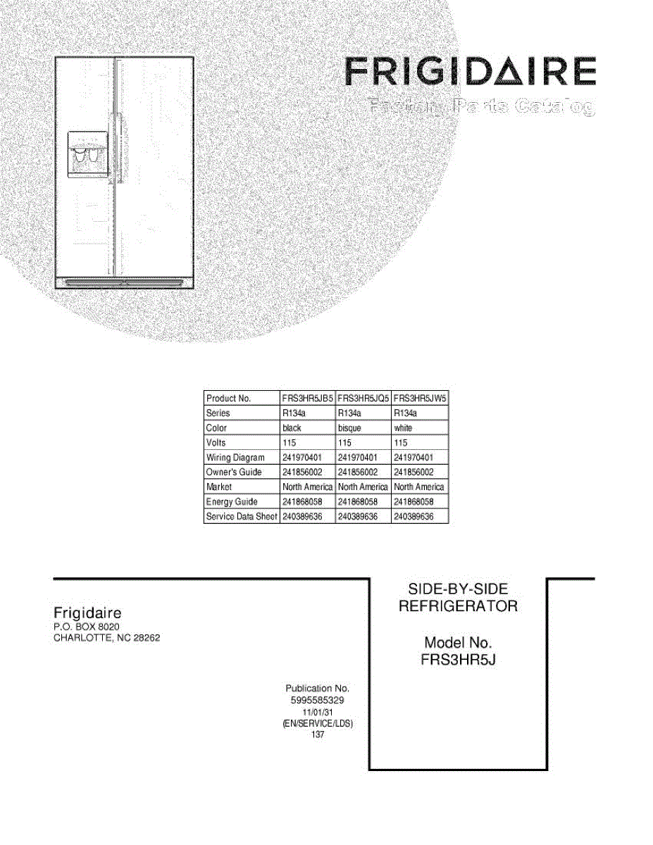 Parts for Frigidaire FRS3HR5JW5: 01 - Cover Parts