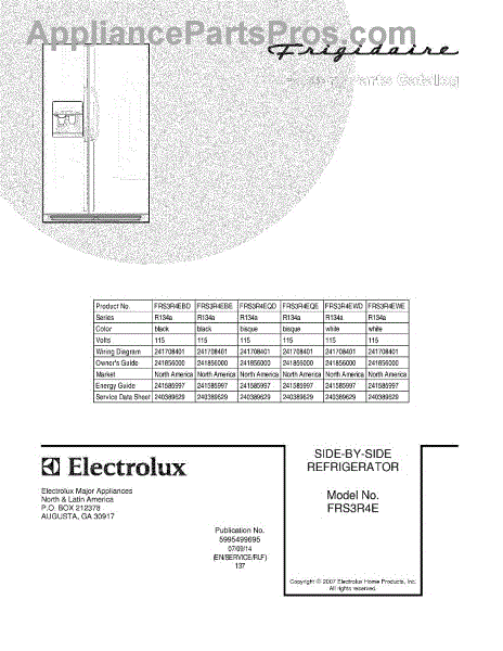 Parts for Frigidaire FRS3R4EQD: 01 - Cover Parts