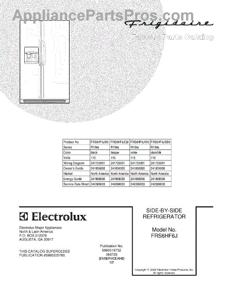 Parts for Frigidaire FRS6HF6JSB0: 01 - Cover Parts