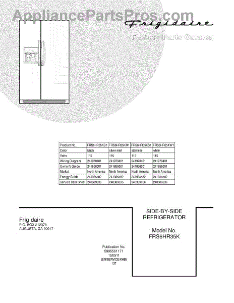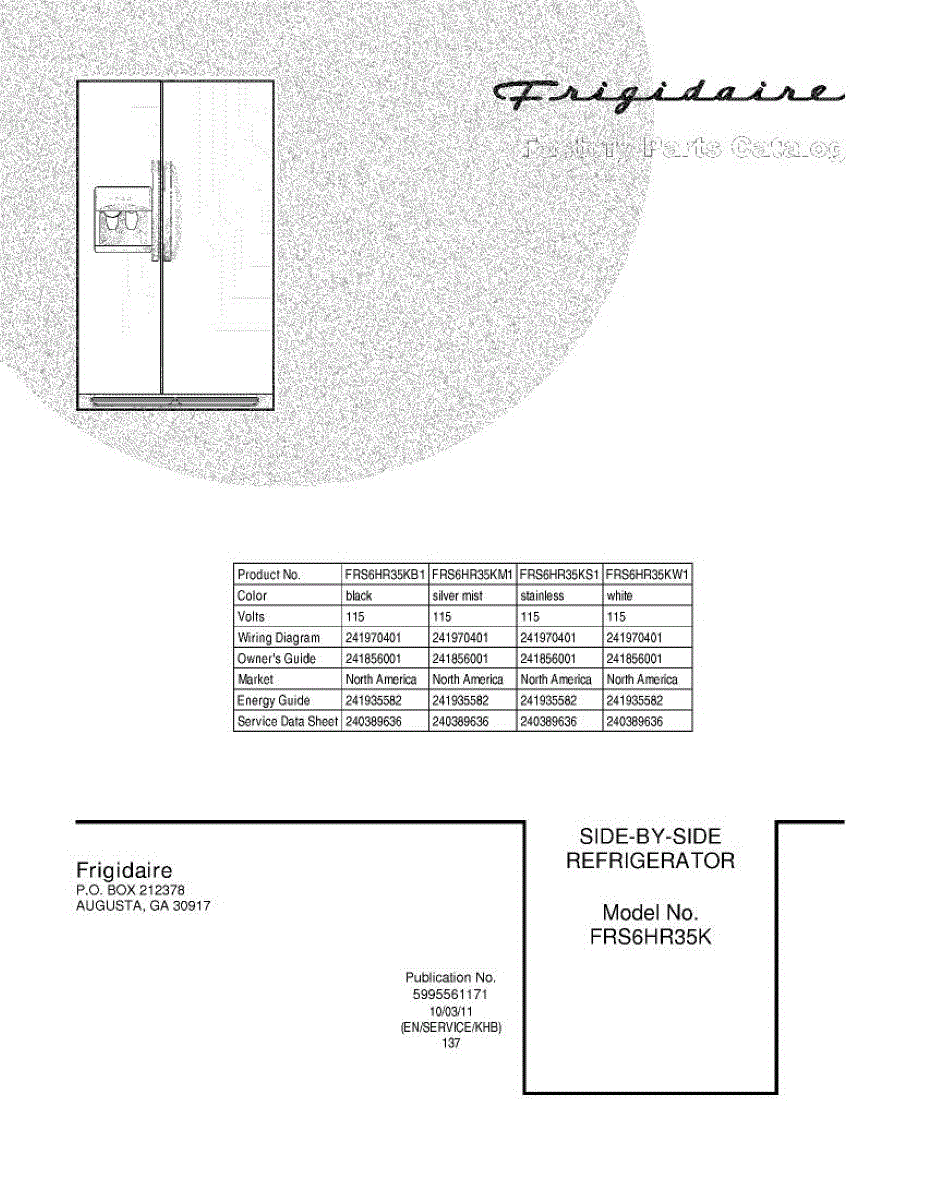 Parts for Frigidaire FRS6HR35KB1: 01 - Cover Parts