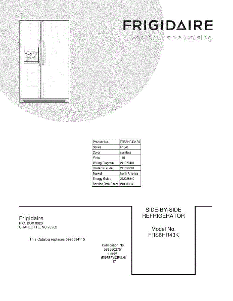 Parts for Frigidaire FRS6HR43KS0: 01 - Cover Parts