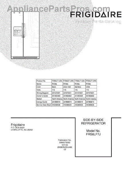 Parts for Frigidaire FRS6LF7JS6: 01 - Cover Parts