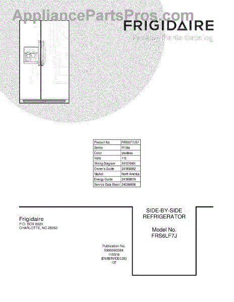 Parts for Frigidaire FRS6LF7JS7: 01 - Cover Parts