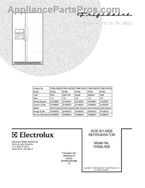 Parts for Frigidaire FRS6LR5EQ3: 01 - Cover Parts