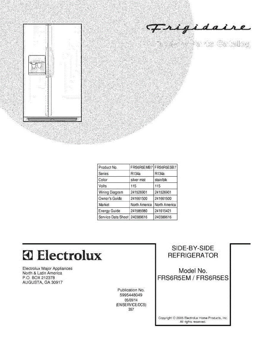 Parts for Frigidaire FRS6R5ESB7: 01 - Cover Parts