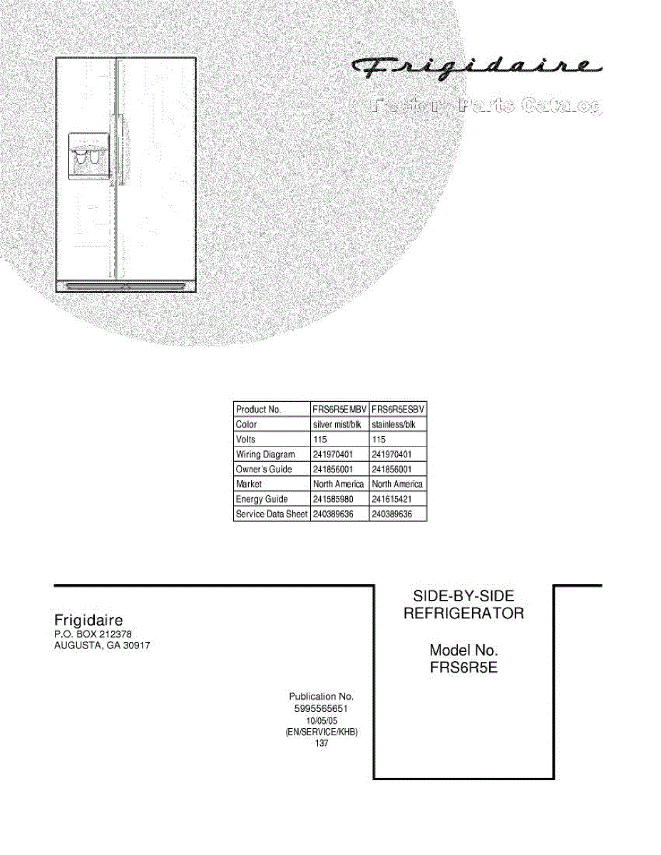 Parts for Frigidaire FRS6R5ESBV: 01 - Cover Parts