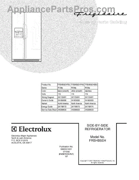 Parts for Frigidaire FRSHB5EHPW3: 01 - Cover Parts