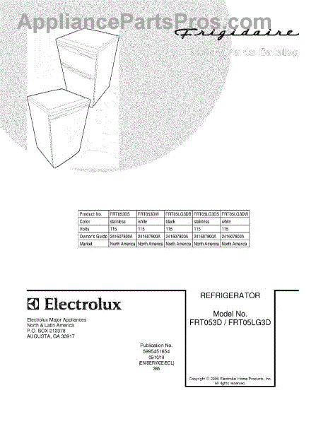 Parts for Frigidaire FRT05LG3DS: 01 - Cover Parts