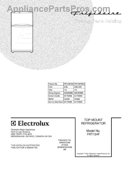 Parts for Frigidaire FRT124FWK0: 01 - Cover Parts