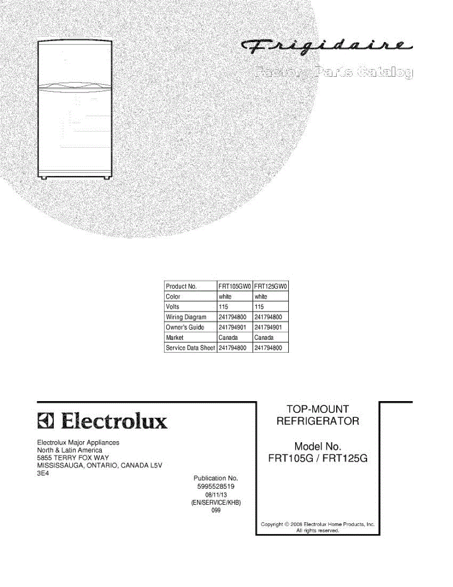 Parts for Frigidaire FRT125GW0: 01 - Cover Parts