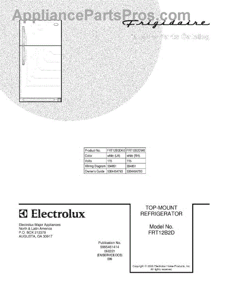 Parts for Frigidaire FRT12B2DK0: 01 - Cover Parts