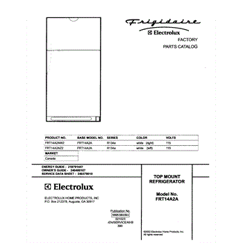 Parts for Frigidaire FRT14A2AW2: 01 - Cover Parts