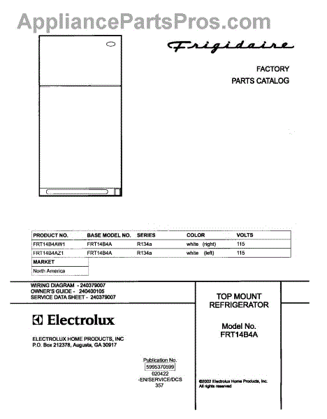Parts for Frigidaire FRT14B4AZ1: 01 - Cover Parts