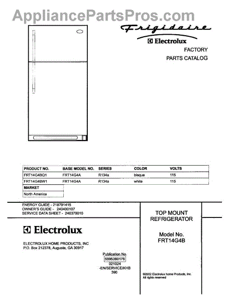Parts for Frigidaire FRT14G4BQ1: 01 - Cover Parts