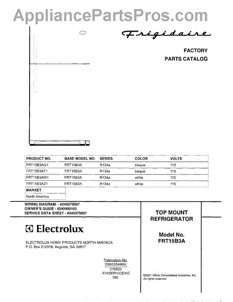 Parts for Frigidaire FRT15B3AQ1: 01 - Cover Parts