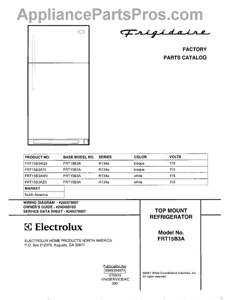 Parts for Frigidaire FRT15B3AZ0: 01 - Cover Parts