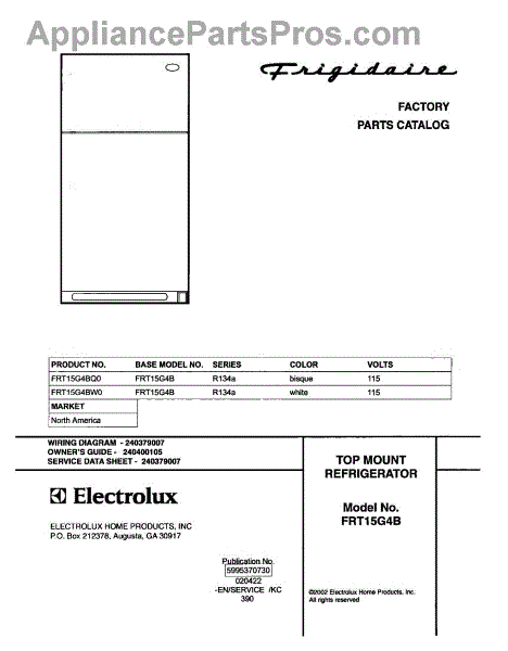 Parts for Frigidaire FRT15G4BW0: 01 - Cover Parts