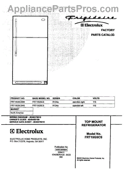 Parts for Frigidaire FRT15G5CSB0: 01 - Cover Parts