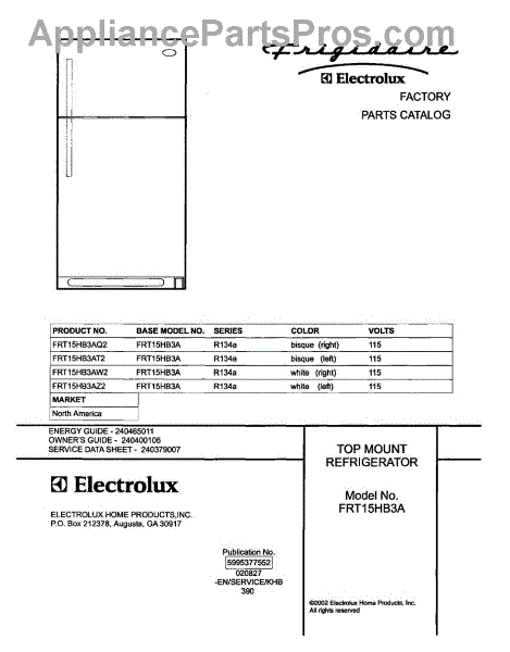 Parts for Frigidaire FRT15HB3AT2: 01 - Cover Parts
