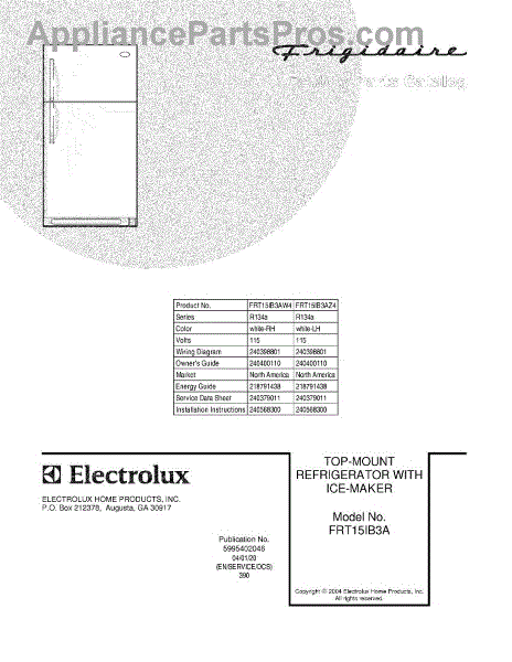 Parts for Frigidaire FRT15IB3AW4: 01 - Cover Parts