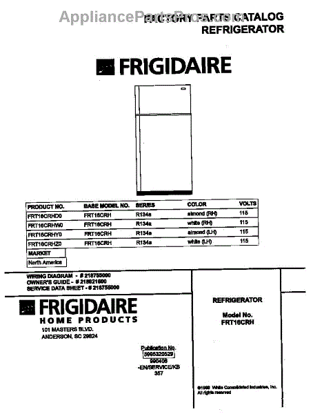 Parts for Frigidaire FRT16CRHD0: 01 - Cover Parts