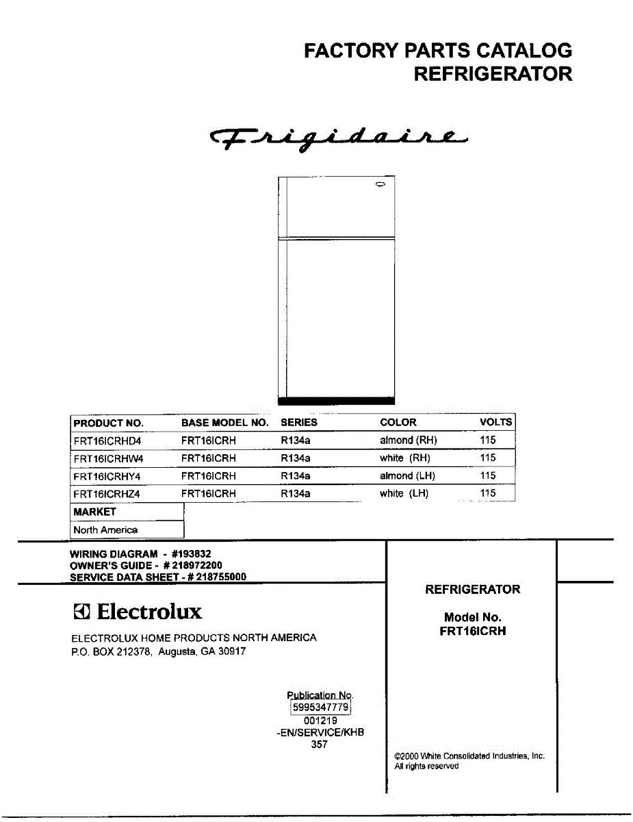 Parts for Frigidaire FRT16ICRHW4: 01 - Cover Parts