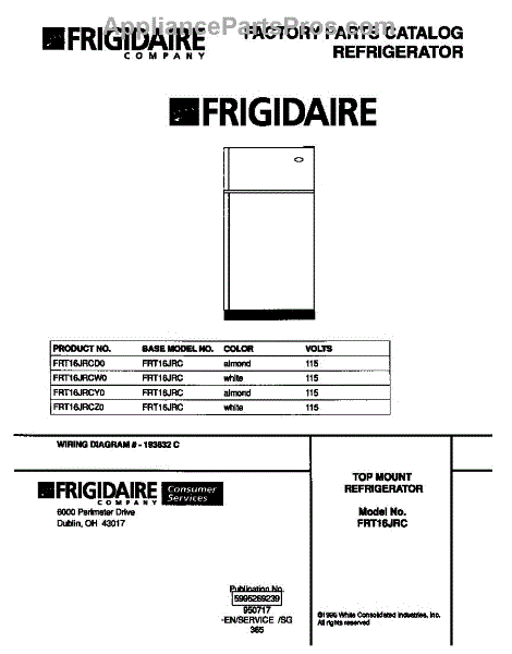 Parts for Frigidaire FRT16JRCD0: 01 - Cover Parts