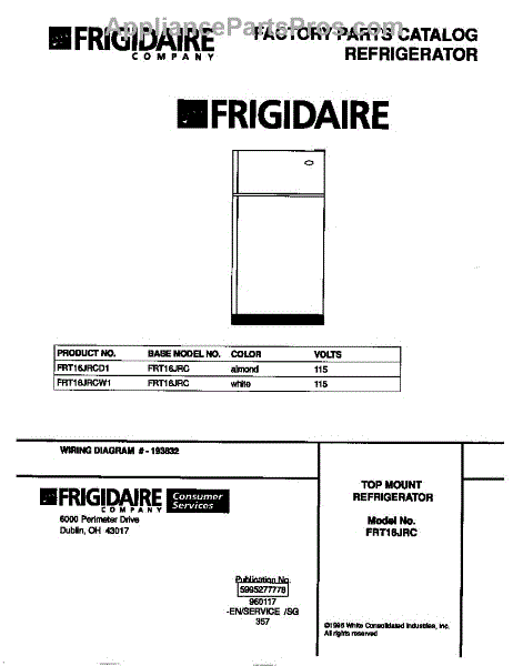 Parts for Frigidaire FRT16JRCD1: 01 - Cover Parts