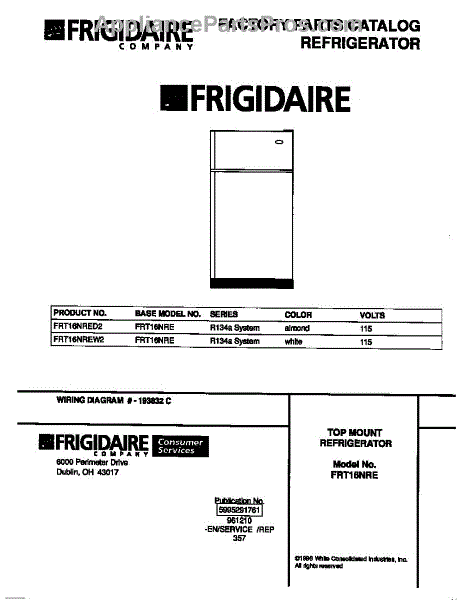 Parts for Frigidaire FRT16NRED2: 01 - Cover Parts