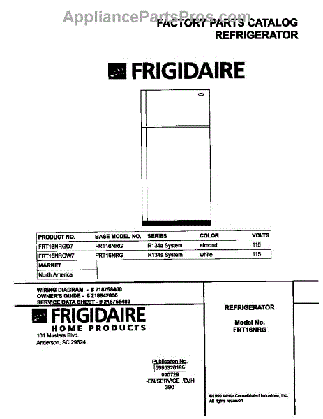 Parts for Frigidaire FRT16NRGD7: 01 - Cover Parts