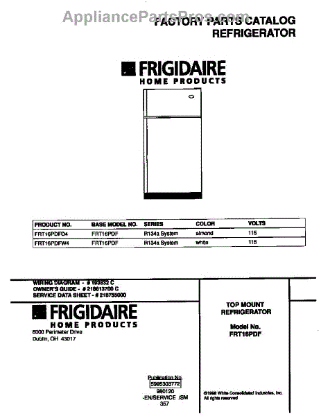 Parts for Frigidaire FRT16PDFD4: 01 - Cover Parts