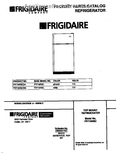 Parts for Frigidaire FRT16RSCW4: 01 - Cover Parts